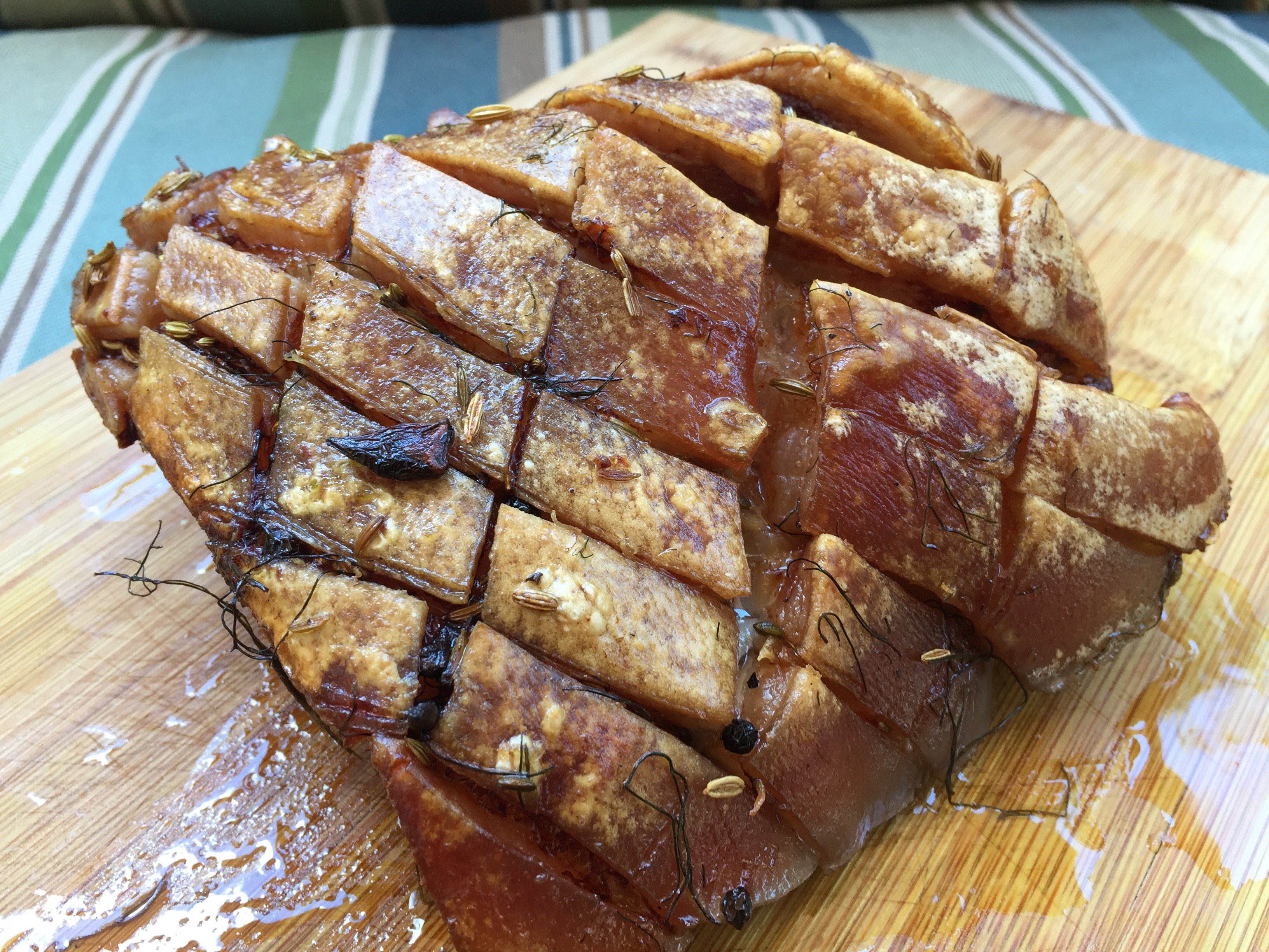 Delicious: succulent and crispy roasted Kunekune pork belly