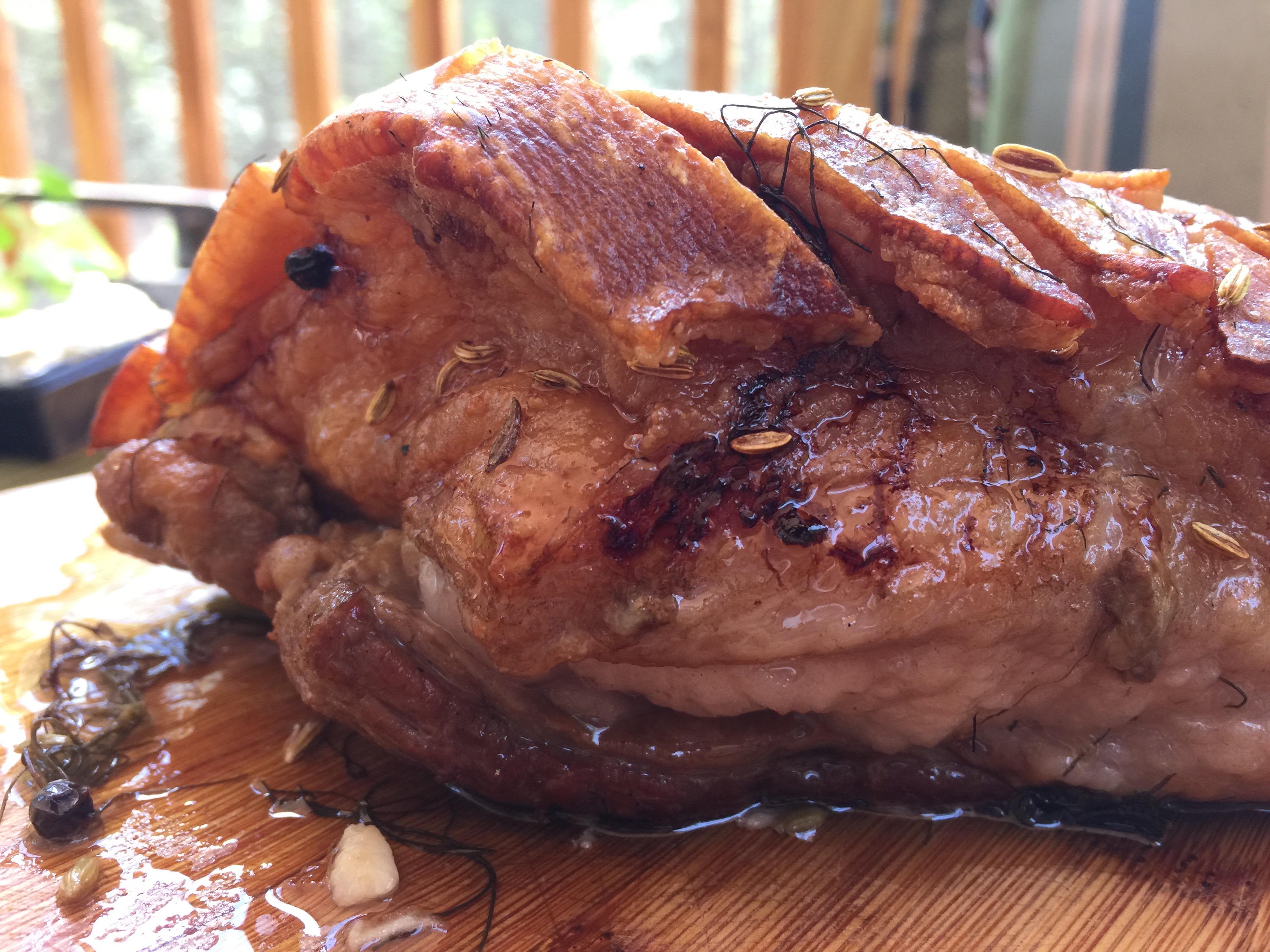 Delicious: succulent and crispy roasted Kunekune pork belly