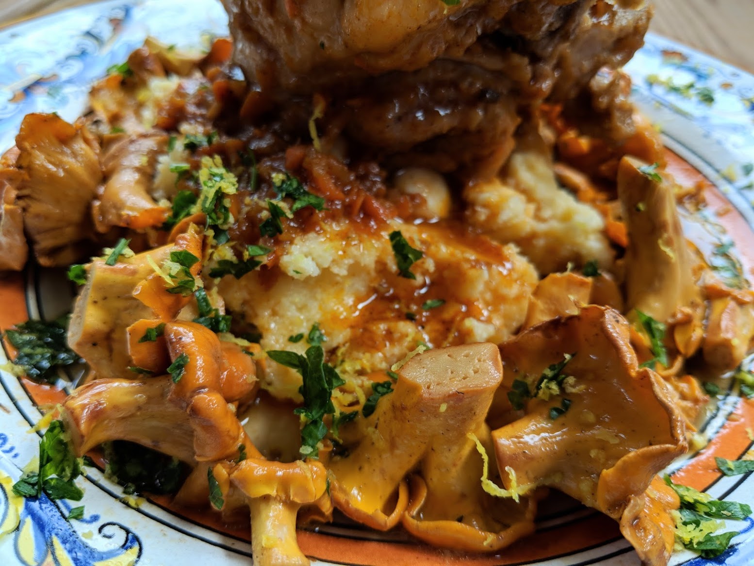 Kunekune Pork Osso Buco with Chanterelles, Polenta and Gremolata