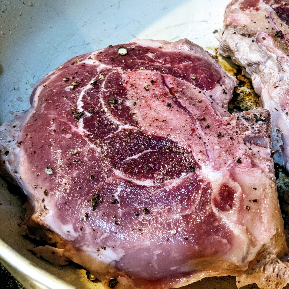 Pan-seared & Oven-finished Sirloin Chops, with Whipped Lardo and Chanterelles