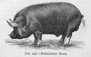 Here’s an example between an old fashioned (English) Berkshire boar, and a modernized American one- selectively bred for fast growth and meat production. The English type is more of a lard type.