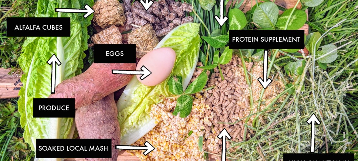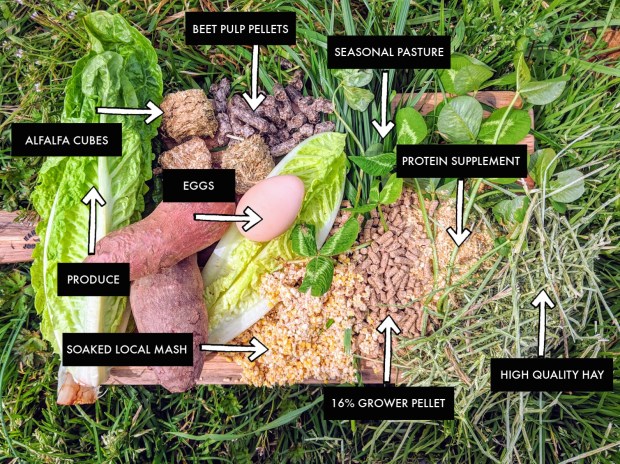 With that said, here’s some more details about the items in the photo. These are in no particular order, and aren’t fed all at once or year ’round. This photo shows EXAMPLES.